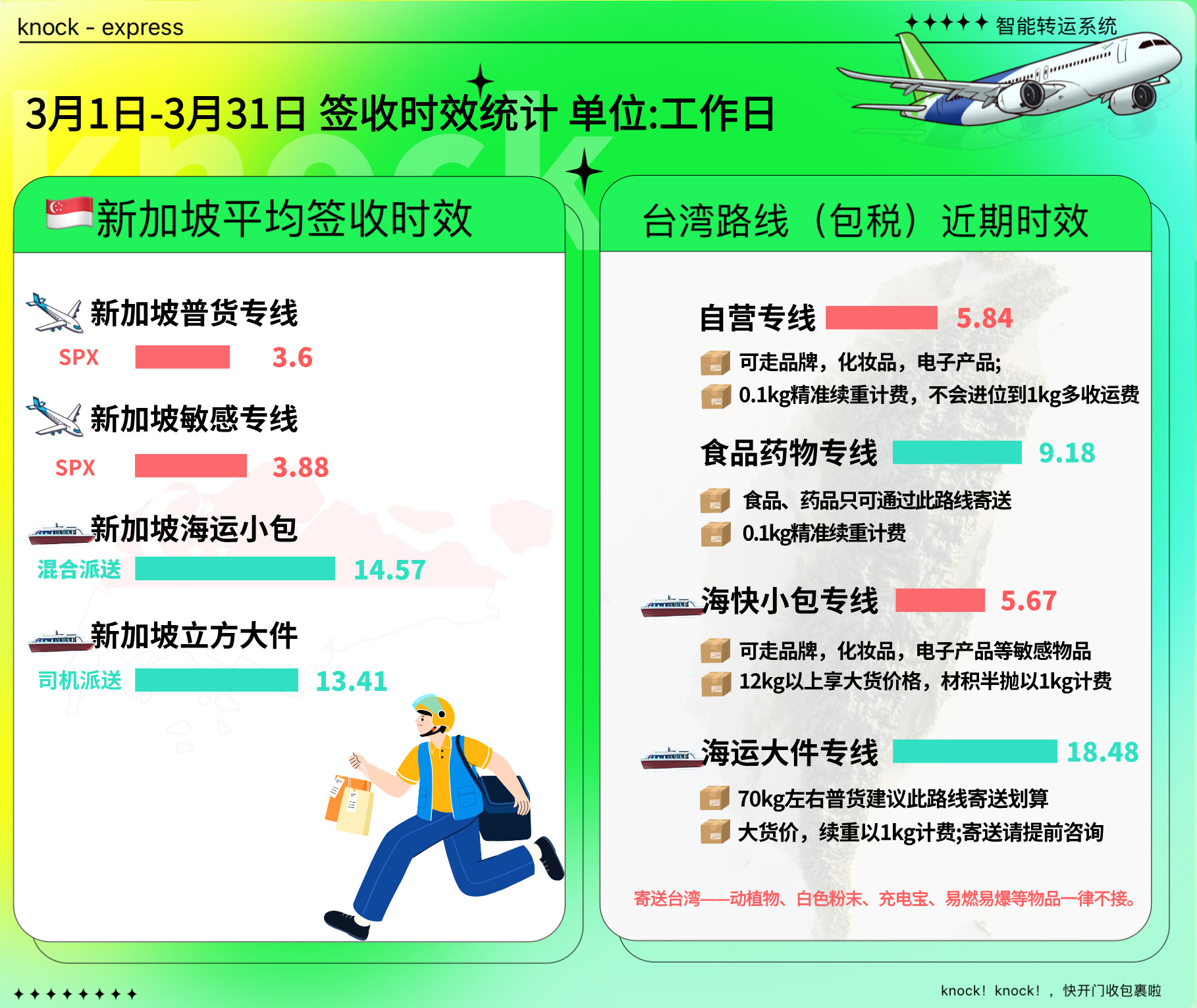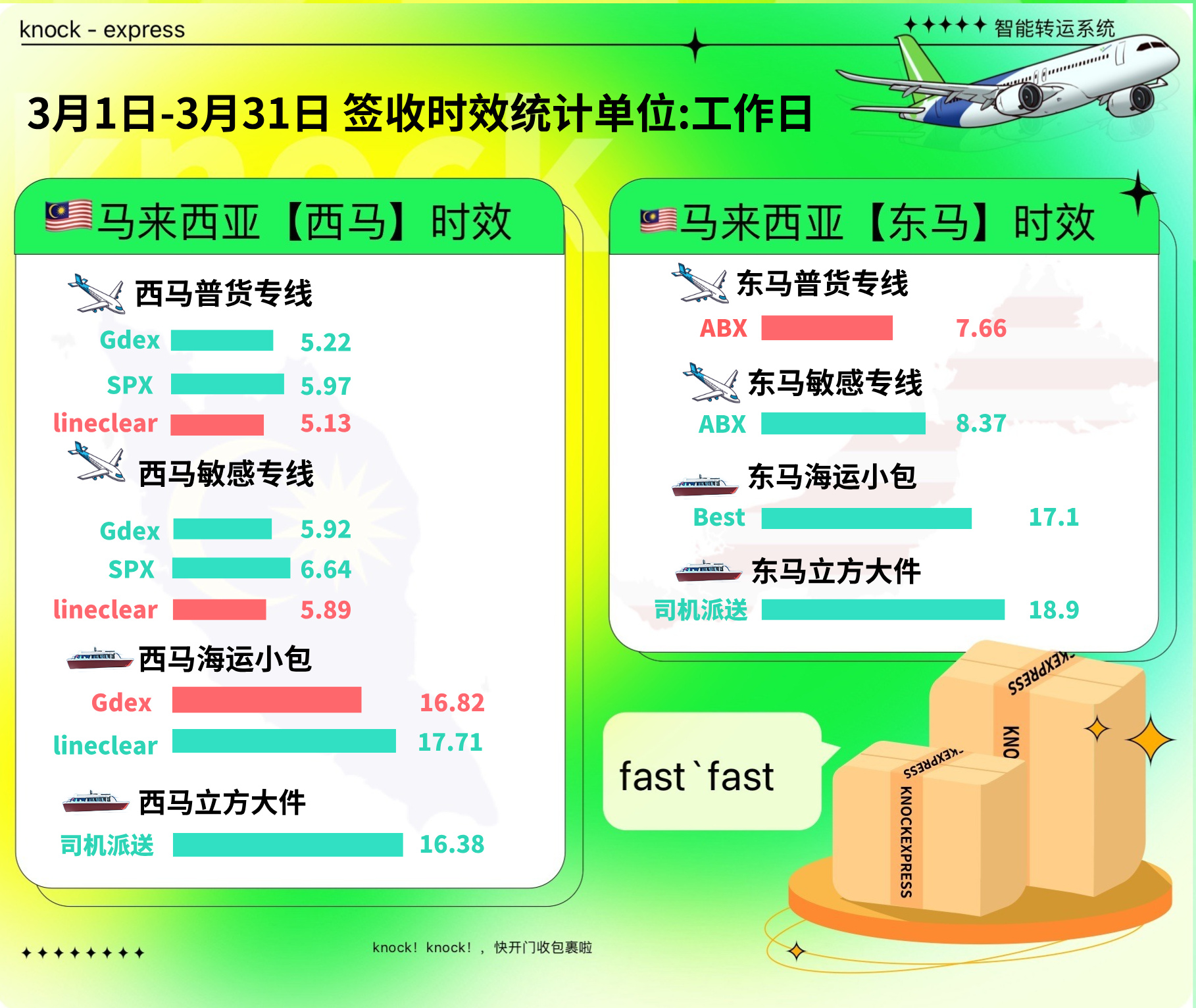 3月各地区路线/运价信息资讯回顾,knock将不断优化服务水平,助力包裹安全寄达。
