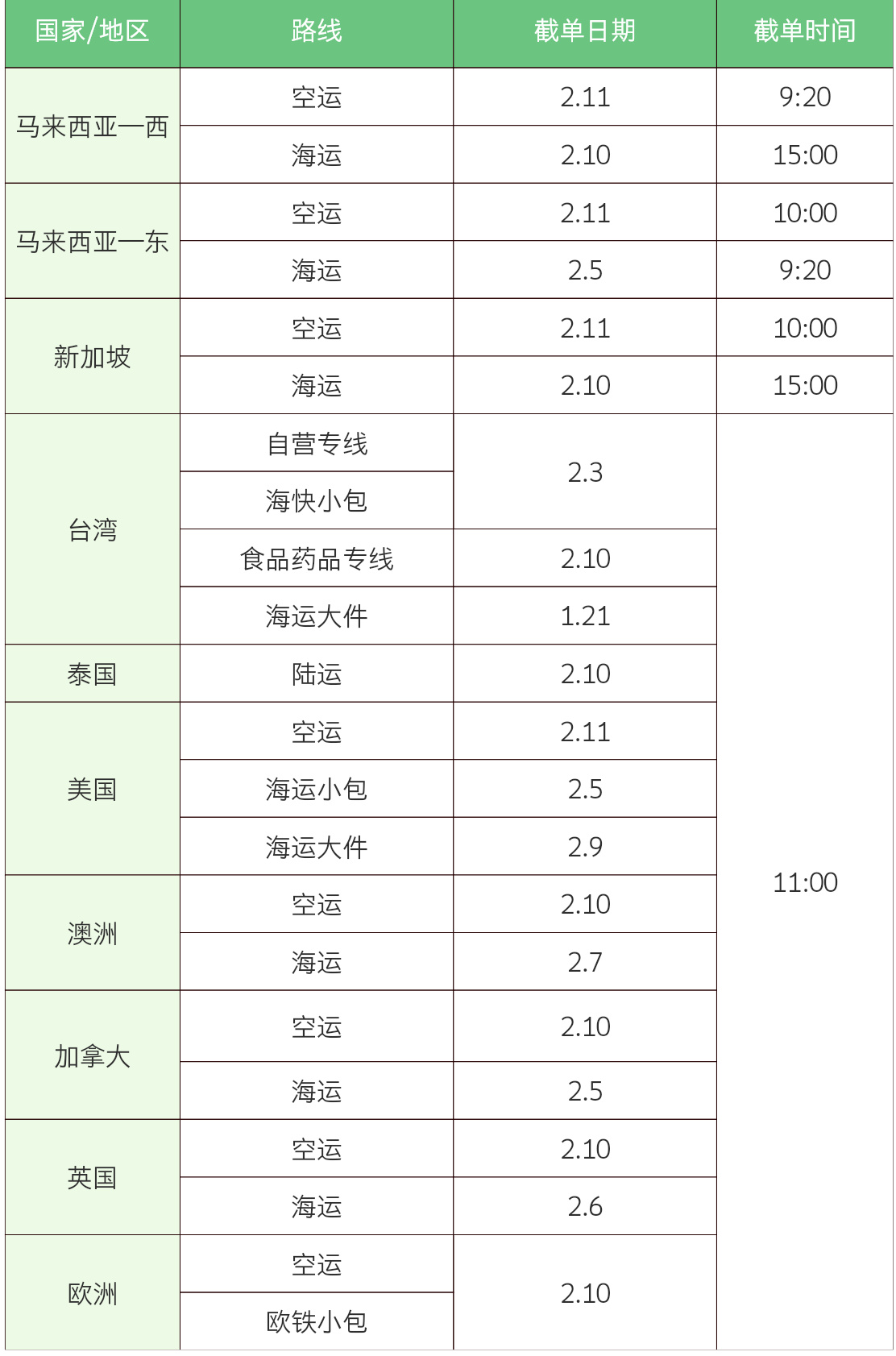 由于发货路线较多,截单时间仅作参考,具体请以订单发货时间为准。若有疑问,您可随时联系小客服。